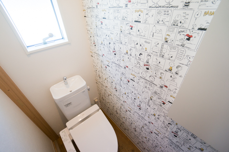 ー 部屋だけではなく、2階トイレにもこだわりのクロスが貼られていて我々は驚いた。