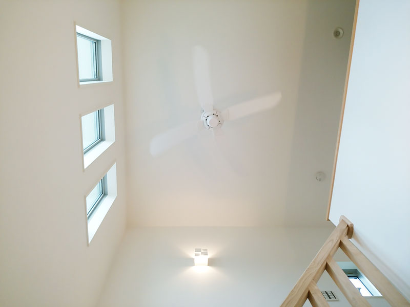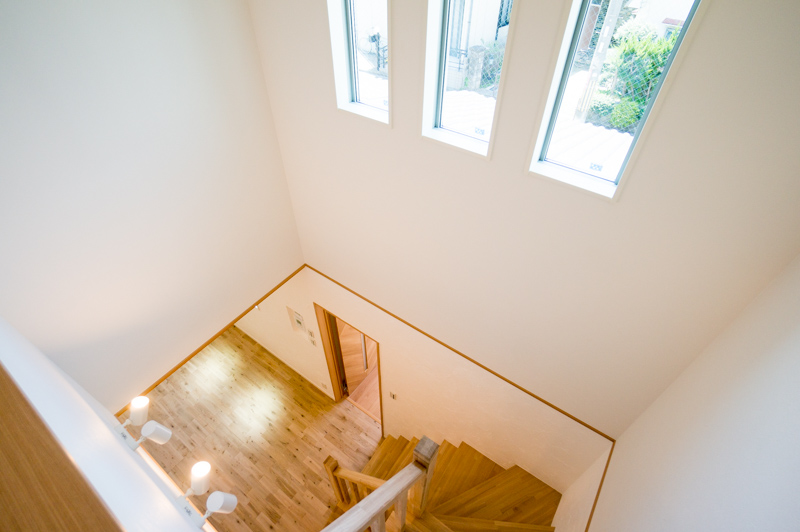 吹き抜けの窓から入ってくる光を遮ることなく、部屋全体に取り入れることができるので明るく風通しの良い住まいとなっています。