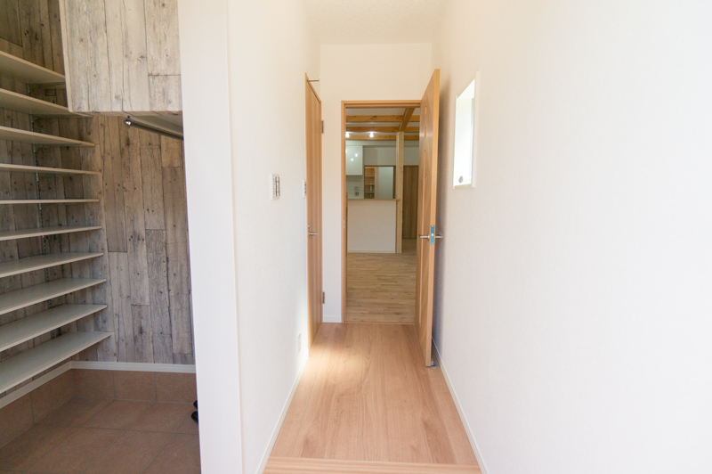 玄関のこちらの隙間には靴を収納できるよう工夫されていて、すっきり整理された状態を保つことができます。