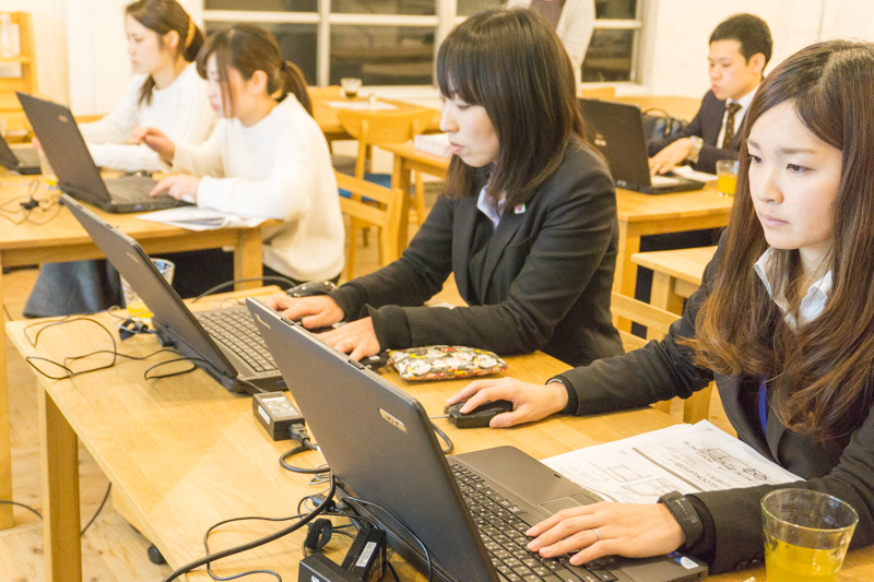 たまたま勤続年数、部署、年代、それぞれ違うみなさんにご協力いただき、仕事終わりやお休みの日にコワーキングスペース「ひらば」で実施しました。