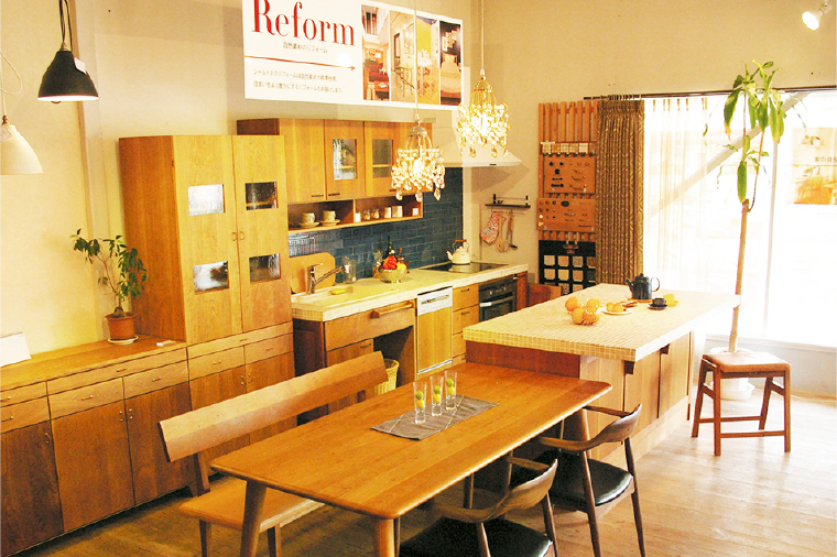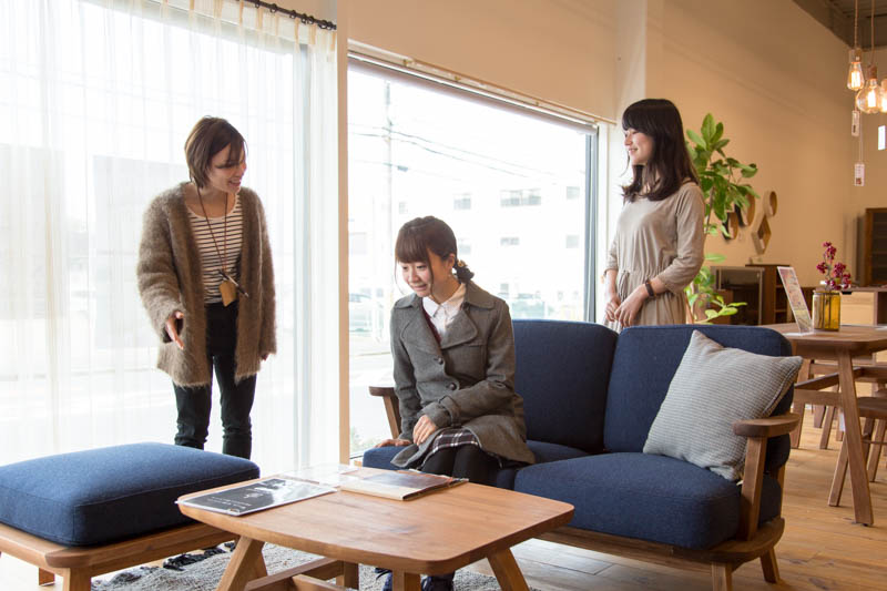 一組ずつのご案内なのでご来店の際はご予約を。国内生産、天然素材の家具を扱っているお店。