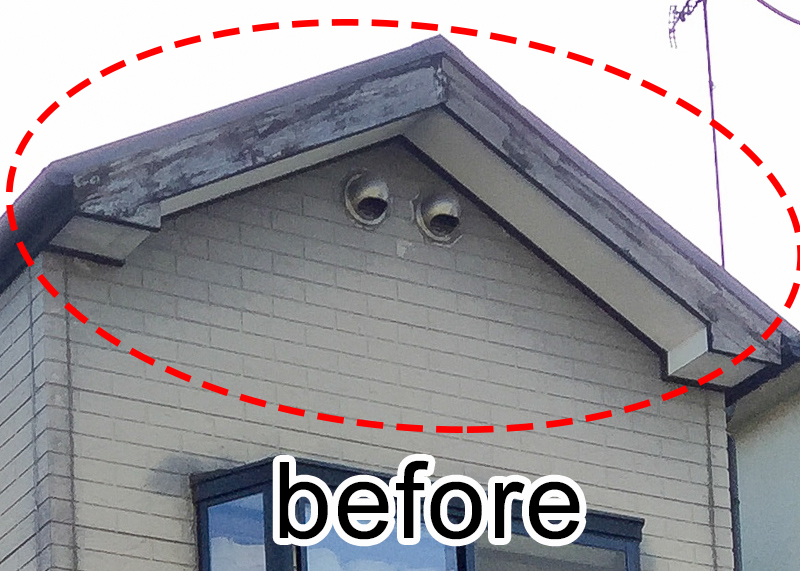 Hさんが気にしておられたのは、仕上がりの色のこともそうなのですが、家の破風板(はふいた)の部分です。