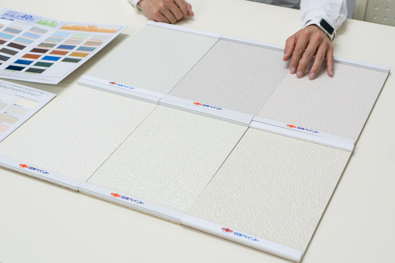 打ち合わせでは塗料の説明であったり、サンプルボードを見せてもらったりと丁寧に説明してもらいました。