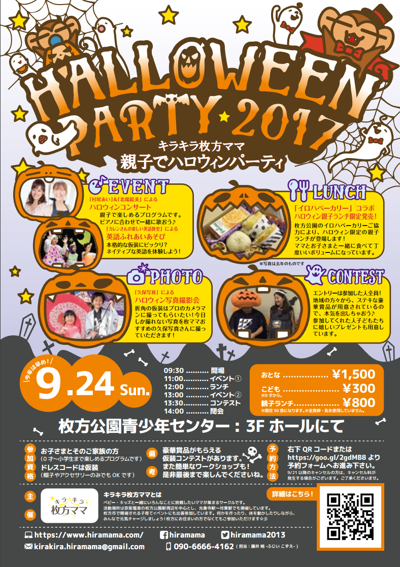 0歳から楽しめる!9/24(日)「キラキラ枚方ママ親子ハロウィンパーティー2017」参加受付中。仮装コンテストも♪【ひらつー広告】