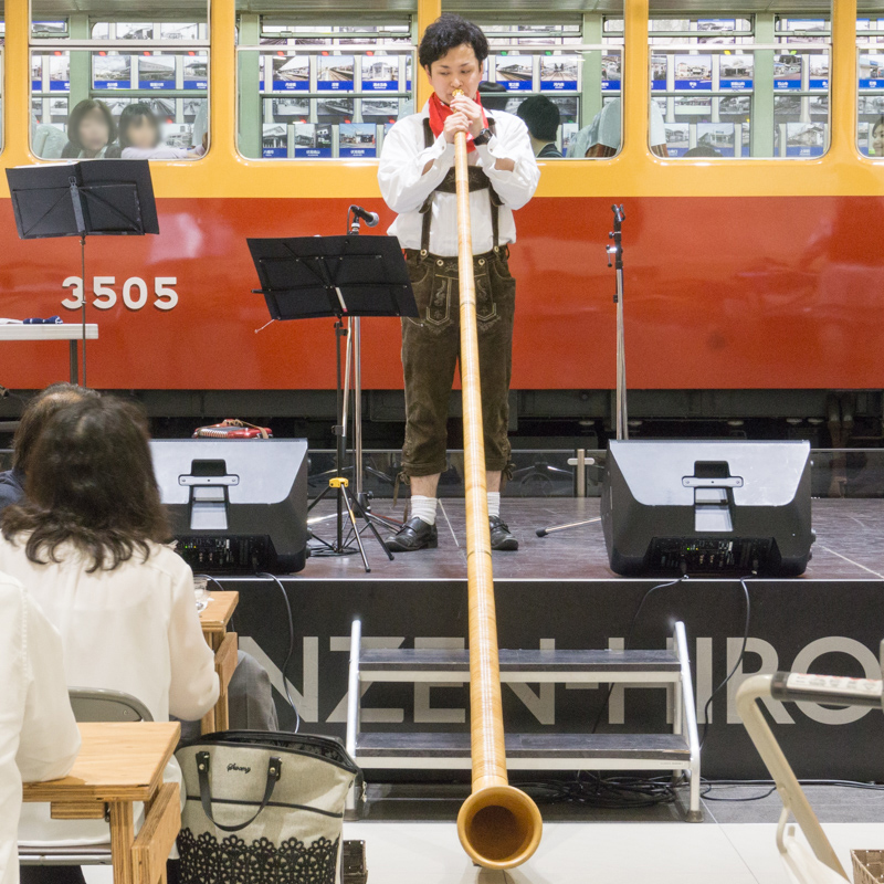 アルプスの本物のヨーデルあり、アルプホルンあり、クーグロッケンあり、ダンスありの盛りだくさんな、楽しい参加型ステージは多方面から好評を得ている。