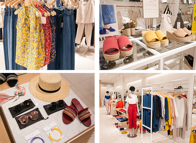 グローバルトレンドを、ファッション感度が高く好奇心旺盛なすべての男女に向け、より早くよりリーズナブルに展開。クリアでシンプルな空気を意識したコーディネートを、小物を含めトータルで提案いたします。(くずはモール公式サイトより)