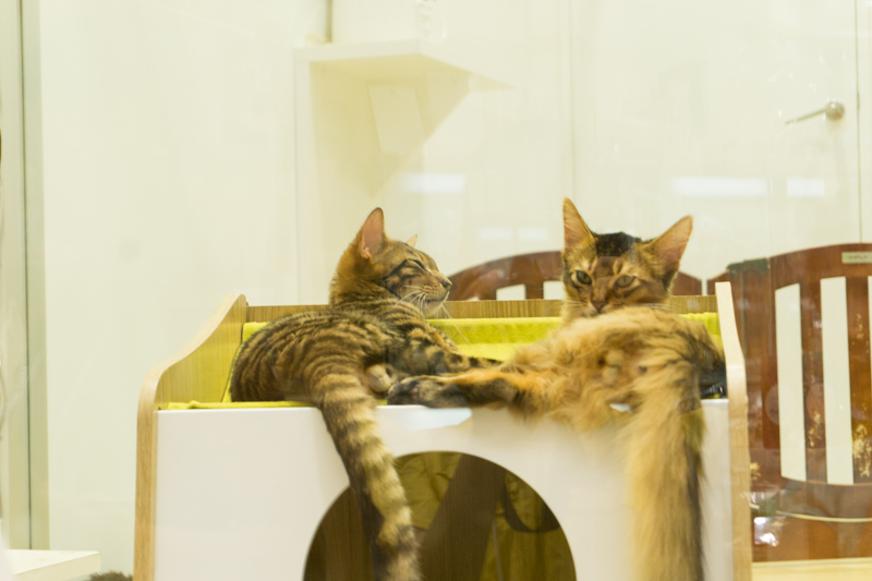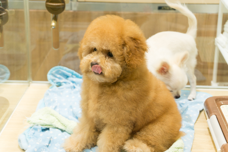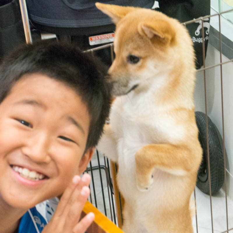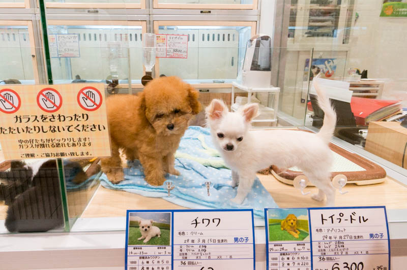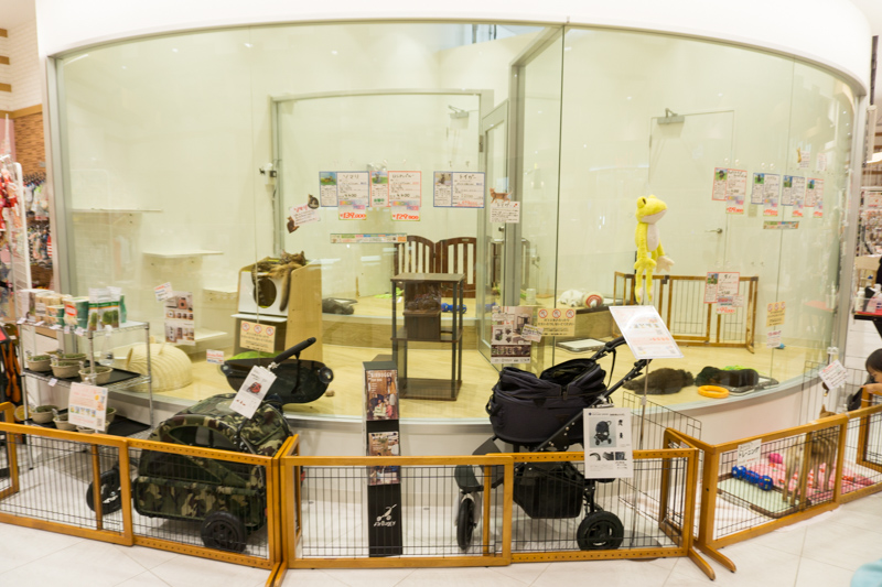 ペットの生体がいるエリア。みんなかわいい子猫・子犬たちに首ったけ