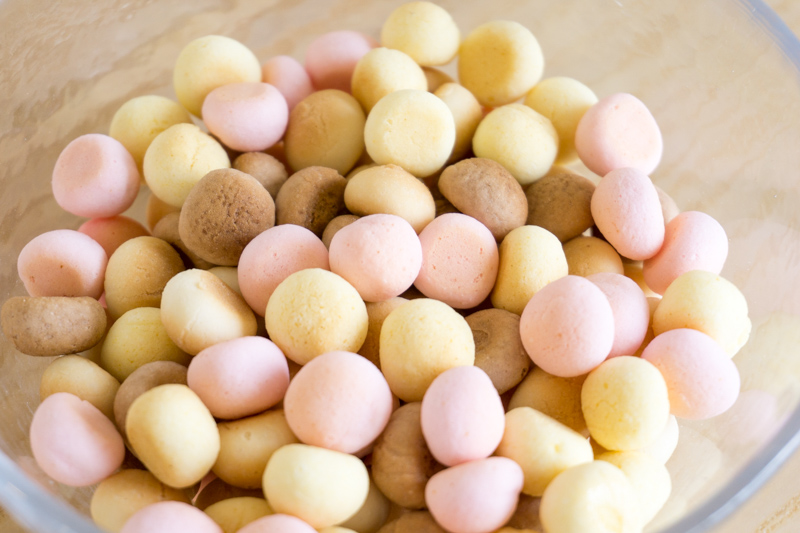 2. 仕上げにたまごボーロ(バニラ)をふりかける