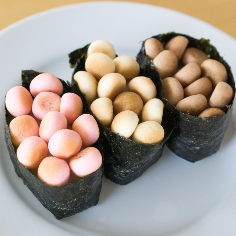 日本人に馴染みのあるお寿司とたまごボーロを合わせれば…間違いないハズ!