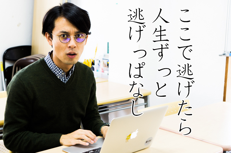 ここで逃げたら人生ずっと逃げっぱなしになるかもしれんで?だから踏ん張りどころちゃうん?と生徒には聞きます。