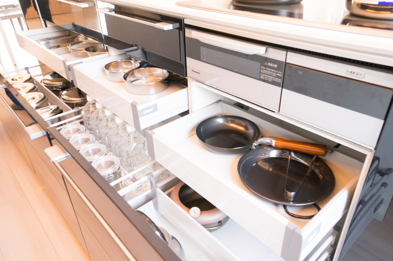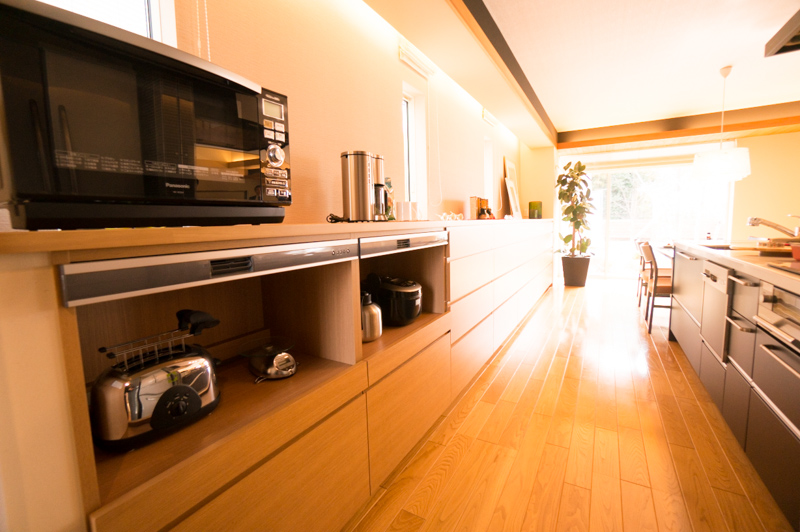 後ろに作業スペースのある収納は、お料理やお片づけの効率をグンと上げてくれます!