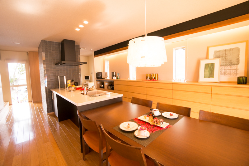 この広い空間ならではの、キッチンとダイニング一直線!