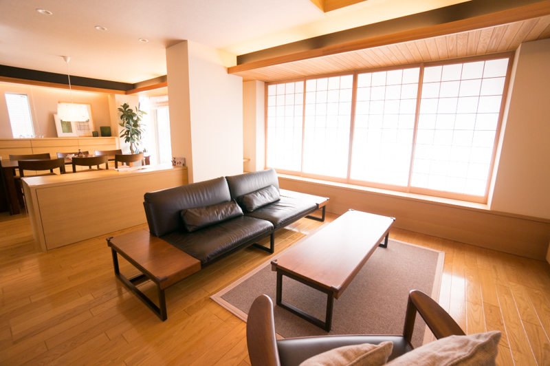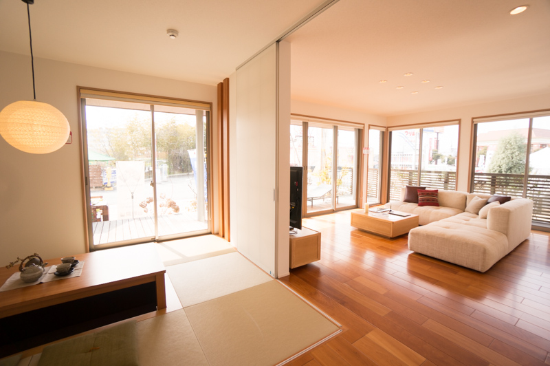 和室側と洋室(リビング)がうまくマッチした、大空間。