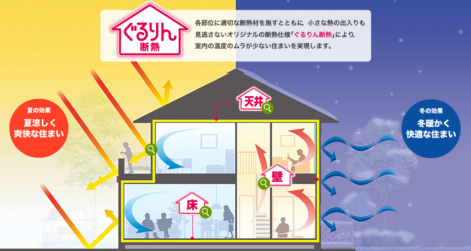 さらに、高い断熱性能+遮熱のハイブリッド省エネのおかげで、冷暖房コストも大幅にダウン!