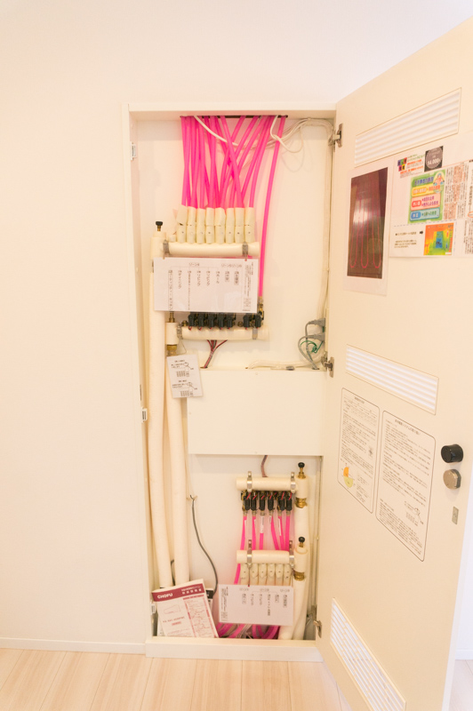 このピンク色の管が、階段を除くすべてのスペースに張り巡らされています!