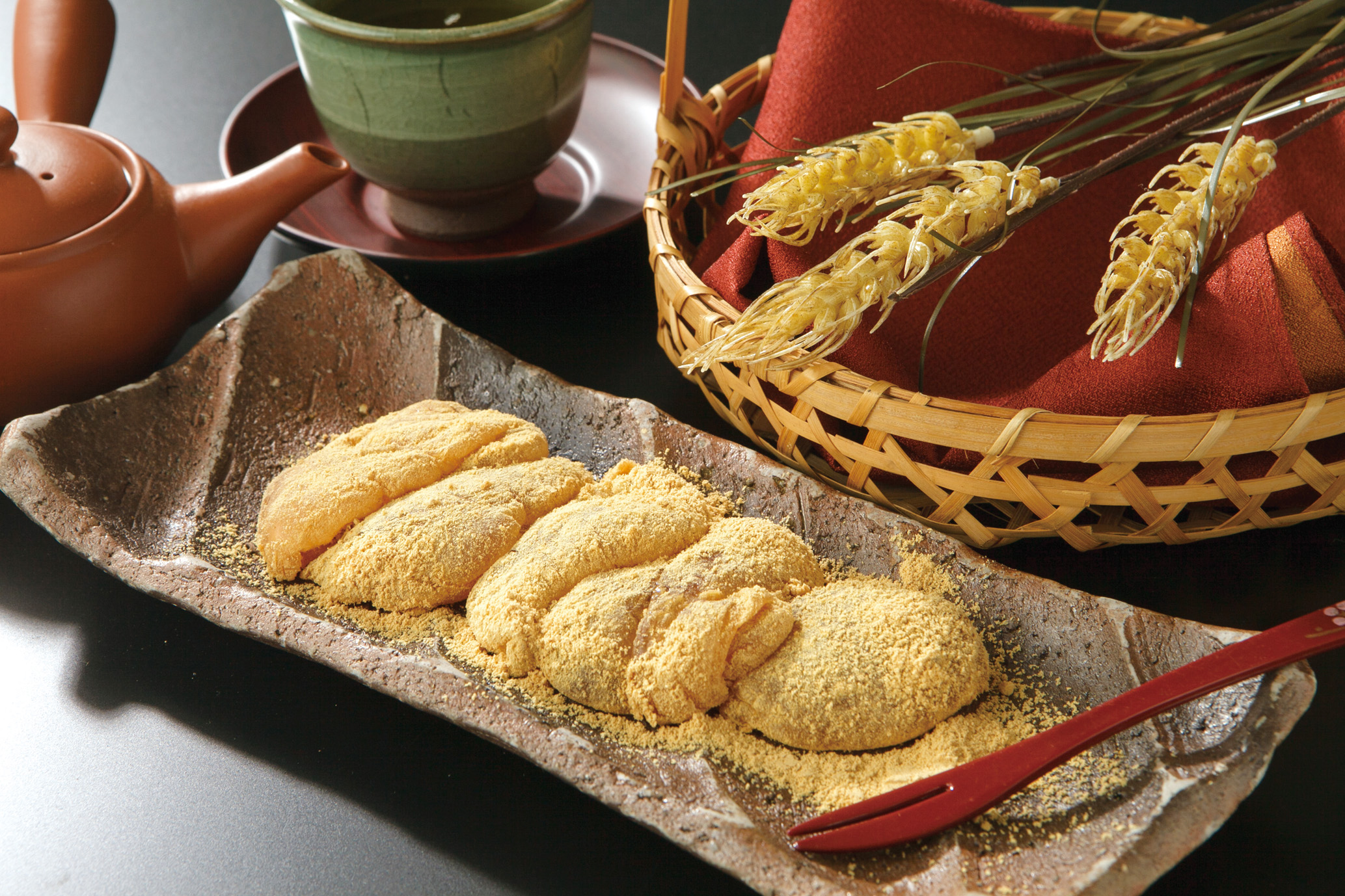 おいも巻き、おはぎ、みたらし団子、さつまいも入芋赤飯