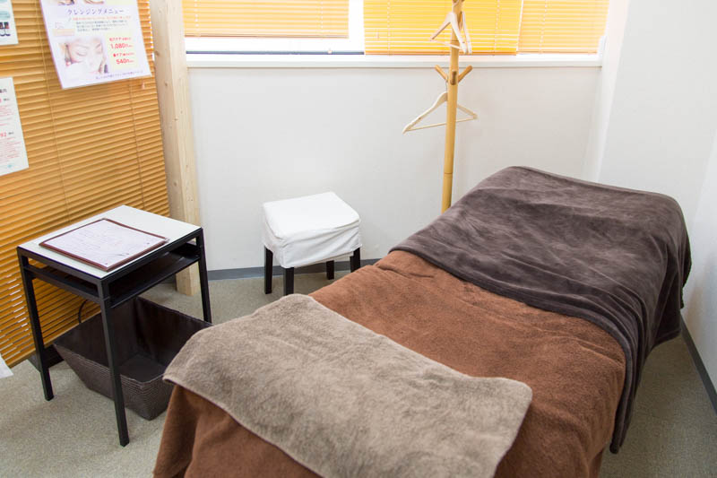 ゆったりとした施術スペースにはふかふかのベッド