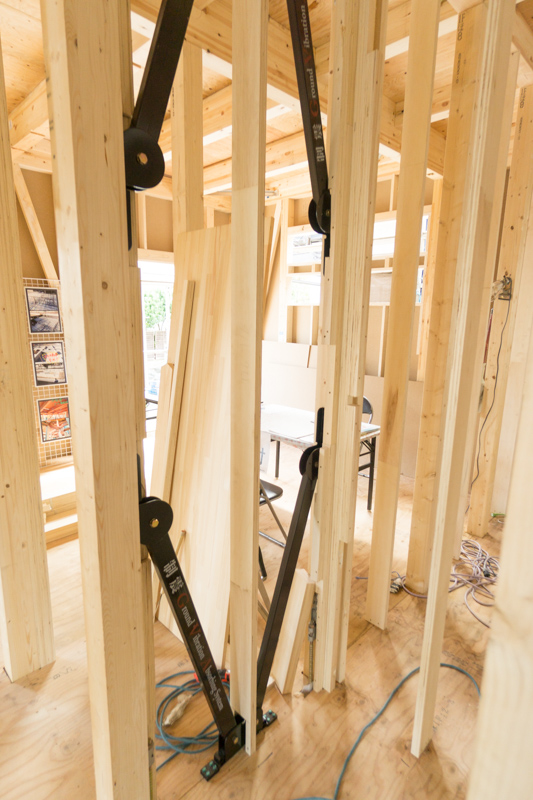 窓上が棚になるってことですね!こうやっておうちってできていくんですね〜。【4】イマドキは「集成材(しゅうせいざい)」を使用!