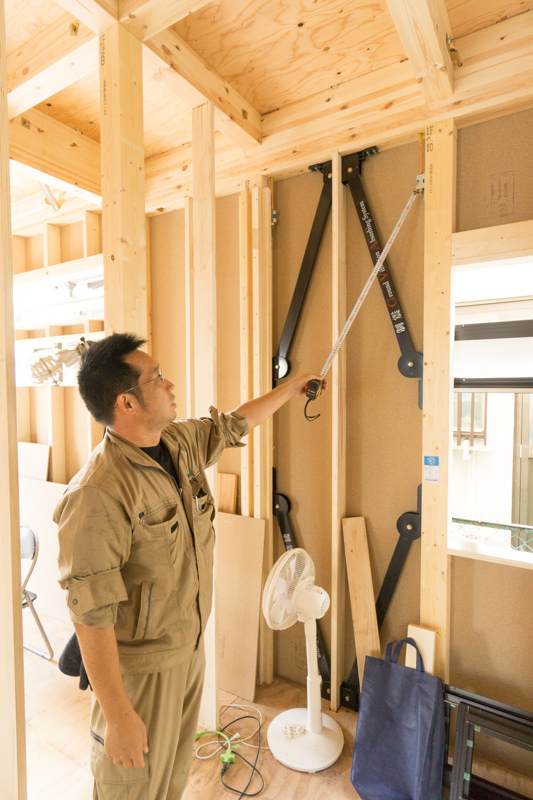 この、ななめに架かっている木材もしっかり家を支えてくれているんです。