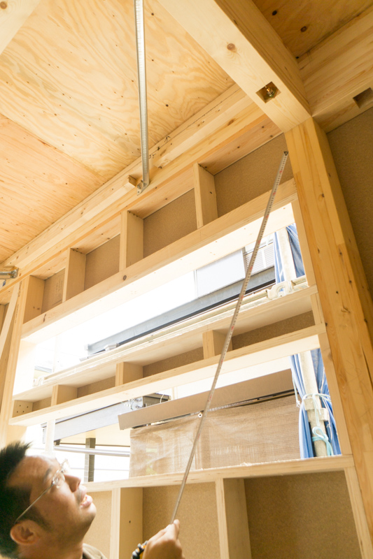 窓上が棚になるってことですね!こうやっておうちってできていくんですね〜。