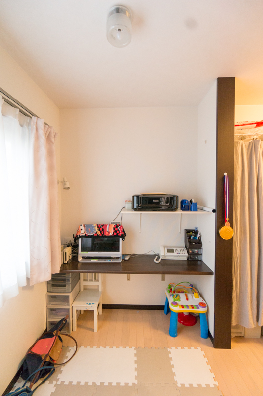 「きっかけは、上の子が小学校にあがったので、1階に勉強するスペースを作りたいと考えたことです。子供達が片付けても片付けても散らかすのもあって、限られた室内空間にできるだけ物や家具を置きたくなくて。」