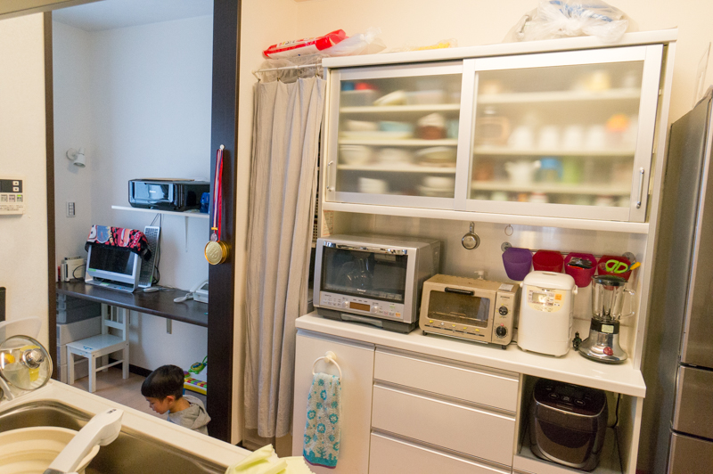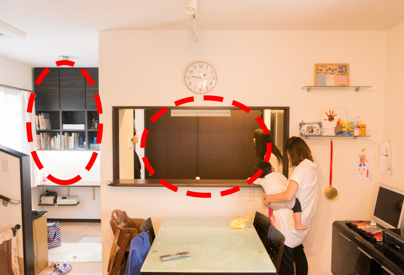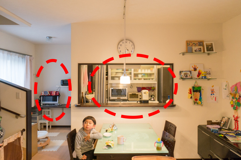 「施工前には、ただでさえ子ども達が片付けても片付けても散らかす上に、リビングから生活家電が丸見えで、ごちゃごちゃしていたのがすごく気になってました。」