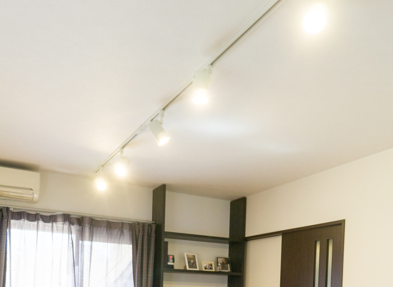 照明器具をスポットライトへ変更することで、すっきり見通しもよくなりました