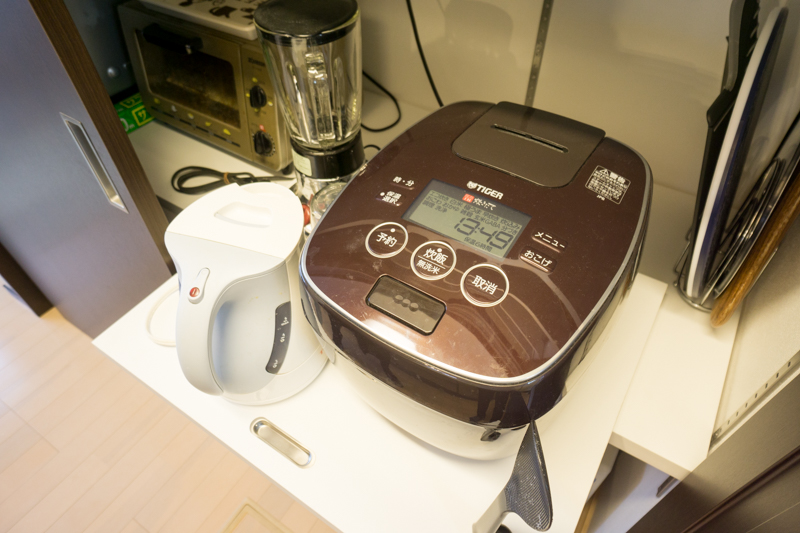 水蒸気のでる炊飯器の台はスライドして手前に引き出せます。