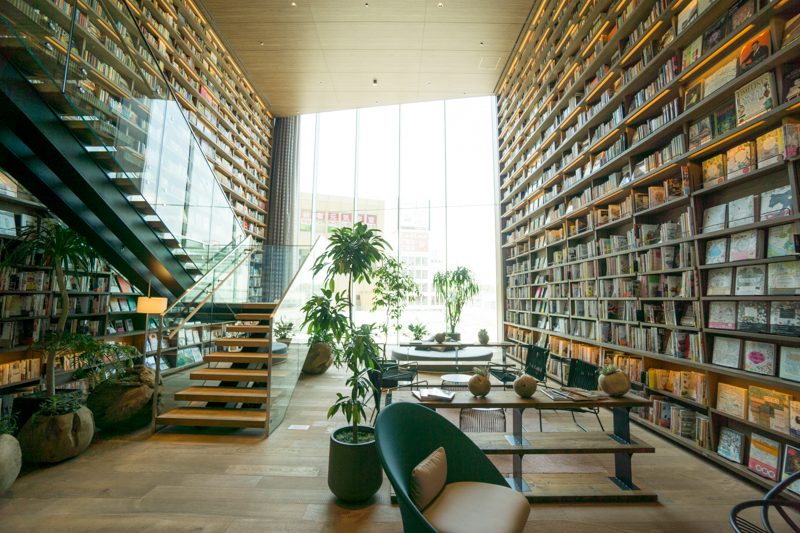 先日オープンしたT-SITEも壁の上から下までびっしりの壁面収納を採用していました。