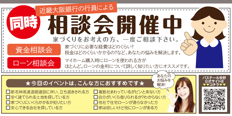 真剣にマイホームを検討しているお父さんお母さんに、近畿大阪銀行員さんによる相談会も開催されます