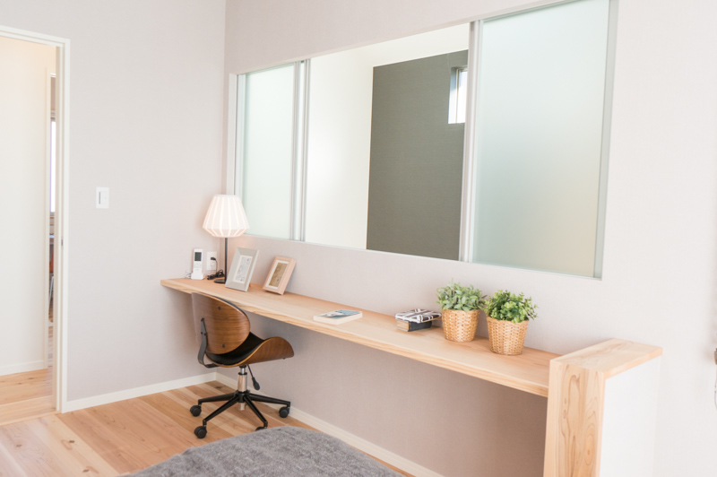 子どもたちが宿題をしたり、お母さんが家計簿をつけたり、お父さんが仕事をしたり…そんな風景が想像できる素敵なスペースです。