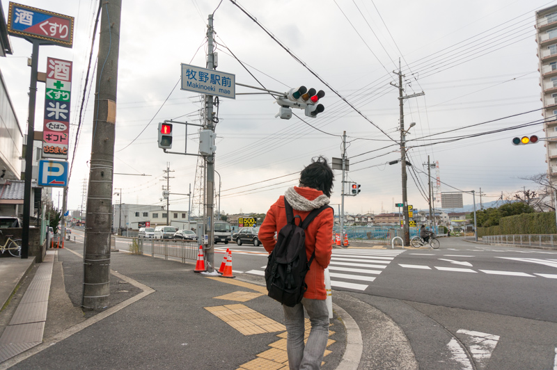 この牧野駅前交差点の横断歩道を渡って、まっすぐ行ったところが「プラリア牧野」です!(このときのまちブラ記事はコチラ)