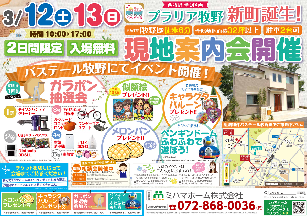 ミハマホーム株式会社の「プラリア牧野」で、3/12(土)13(日)にイベントが開催されますのでご紹介します