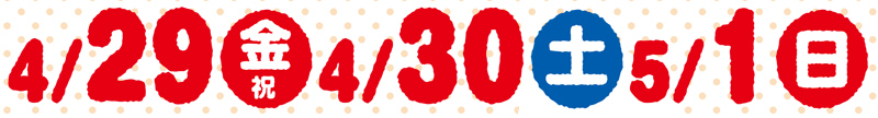 4月29日(金)/ 30日(土)/ 5月1日(日)