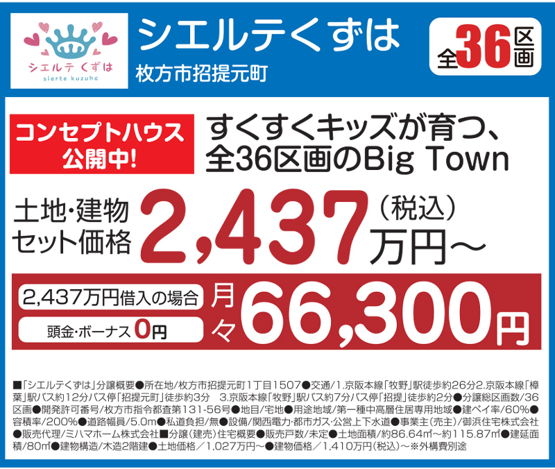 そのほか、ミハマホームには枚方市内に2000万円台、3000万円台の分譲地が5つもあります!ご自身のライフスタイルに合わせて、気になるところを見に行ってみてはいかがでしょうか