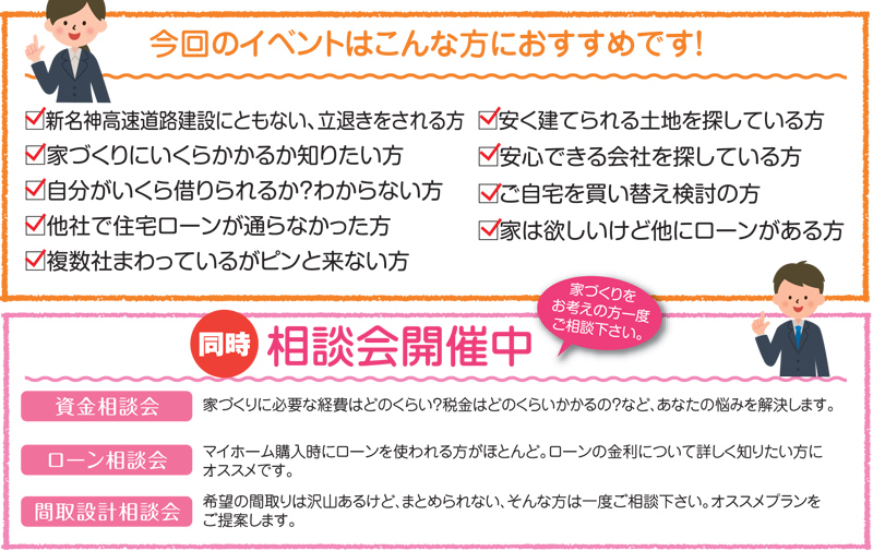 資金やローンそして間取設計など、気になる相談会も開催されます
