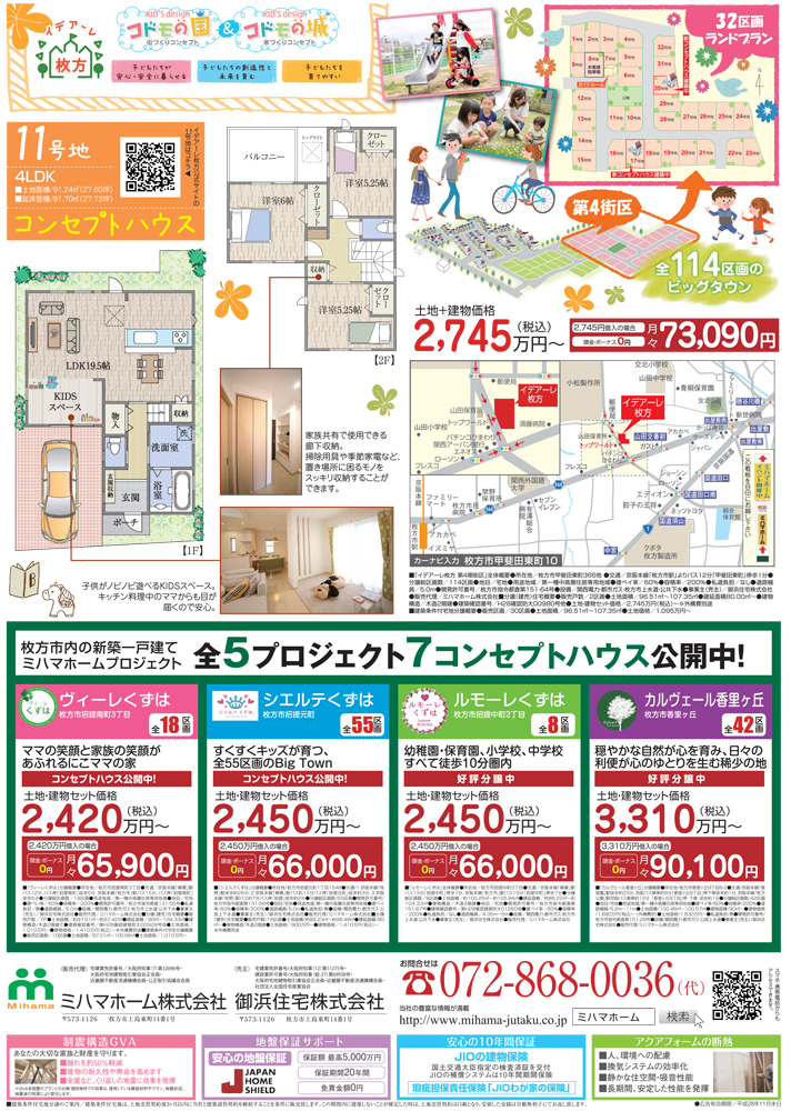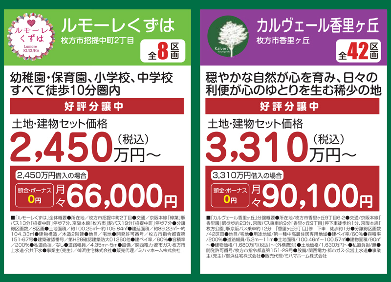 そのほか、ミハマホームには枚方市内に2,000〜3,000万円台の分譲地があと4つあります!家族のライフスタイルに合わせて、気になるところを見に行ってみてはいかがでしょうか