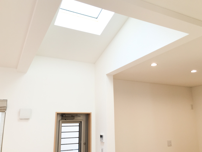 そしてLDKの上には吹抜けがあって、トップライト(天窓)から光がたっぷり降り注いでいます!