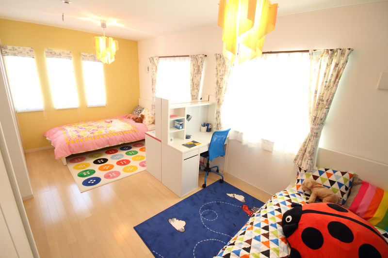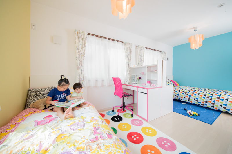 家族の成長に合わせて2つに仕切れる設計になっているので、子どもが小さい間は大きな部屋にしてゆったり使い、小学生になったらリフォームしてそれぞれの個室をつくれば、計画的に子育てできます!
