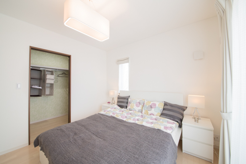主寝室に大きなウォークインクローゼットがあるので、パパとママのかさばるお洋服たちをまとめて収納できちゃいます!衣装棚を置く必要がないので部屋もスッキリ。