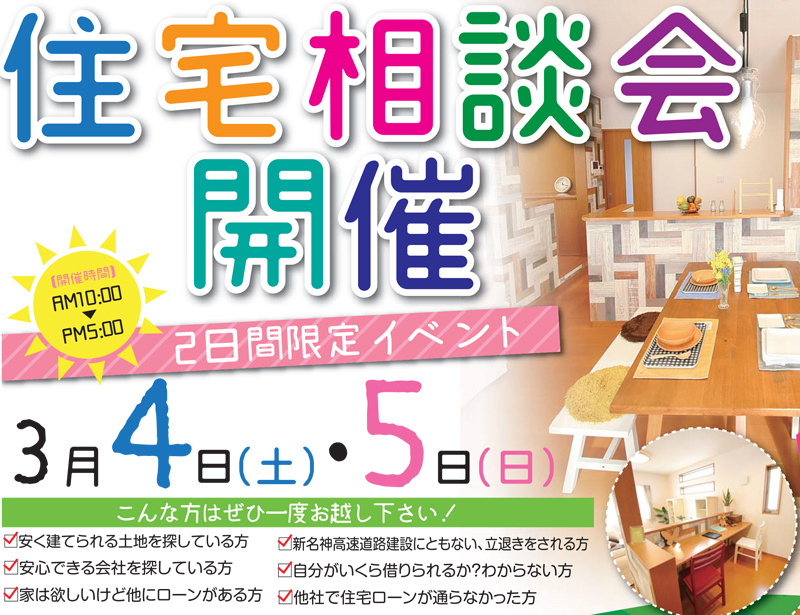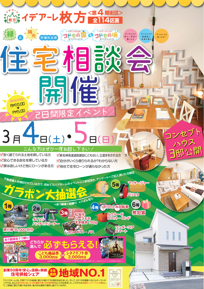 枚方で4年連続住宅販売1位の会社がつくるおうち見学会&相談会!3/4,5開催【ひらつー不動産】