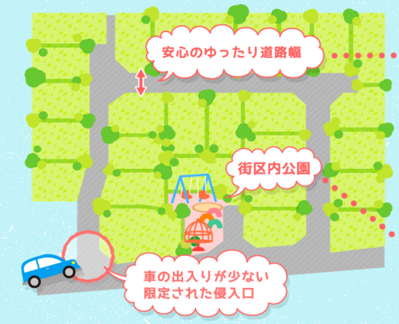 〈2〉街への入口が限定されているので、車の出入りが少ない&不審者が入りにくい!