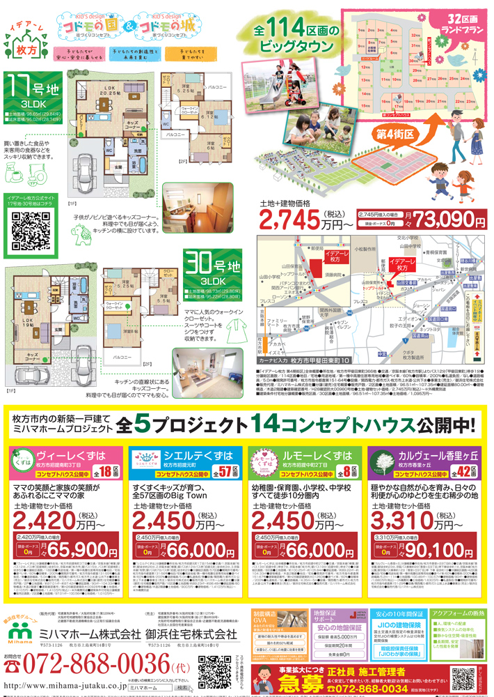 そのほか、ミハマホームには枚方市内に2,000〜3,000万円台の分譲地があと4つあります!