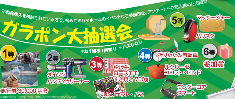 ※ただし参加できるのは、不動産購入を検討されている方で、初めてミハマホームのイベントにご参加いただき、アンケートにご記入いただいた方に限ります。