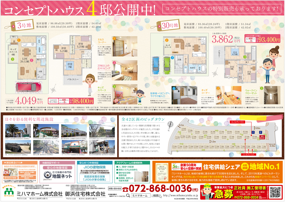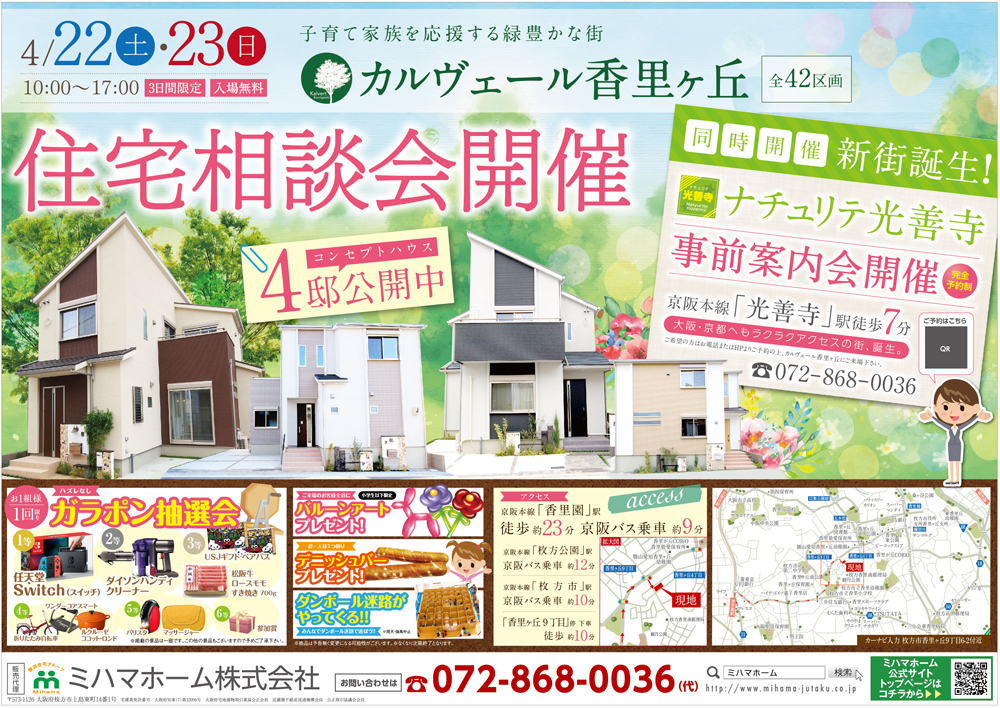 子育て家族を応援!全42区画の大人気香里ケ丘でコンセプトハウス4邸見比べ相談会4/22,23開催。ダンボール迷路も【ひらつー不動産】