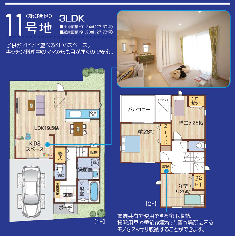 広々キッズスペースはカウンターキッチンからも目が届くレイアウトなので安心です