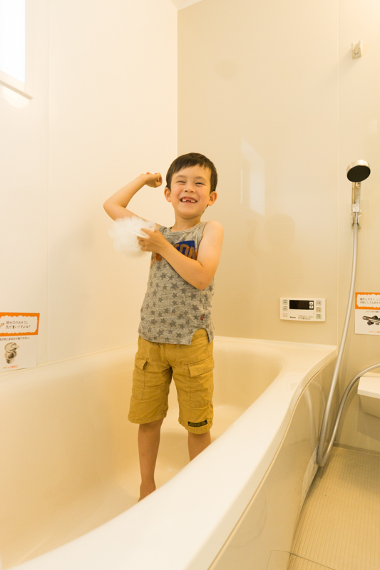汗いっぱいかいたし、ちょっと早いけどお風呂ターイム!