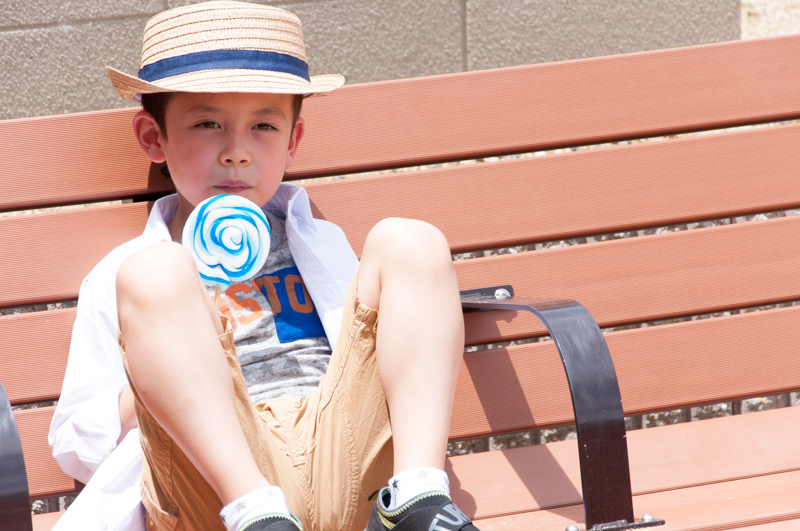 シャボン玉に飽きたら、家の真向かいにある公園へ。ノアくんはいつの間にかアメちゃんをGET。