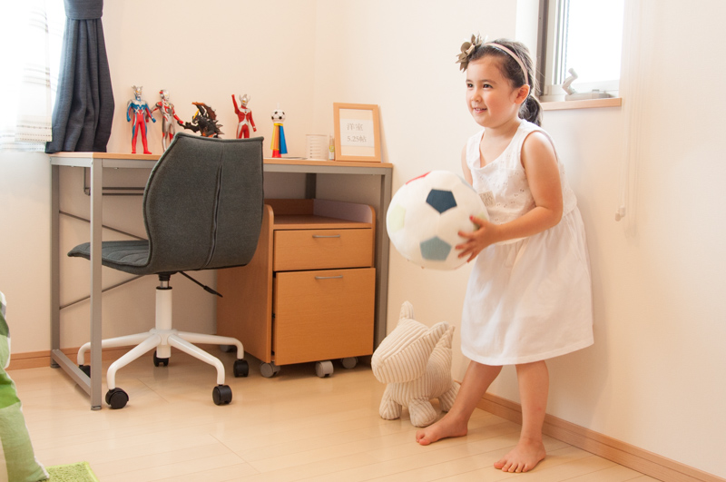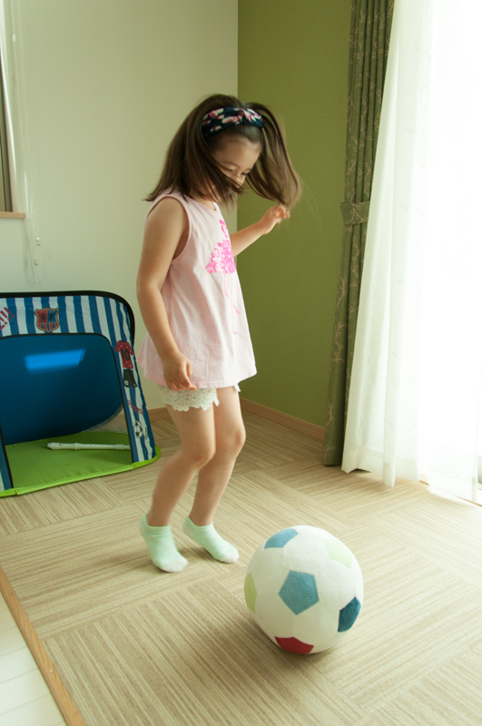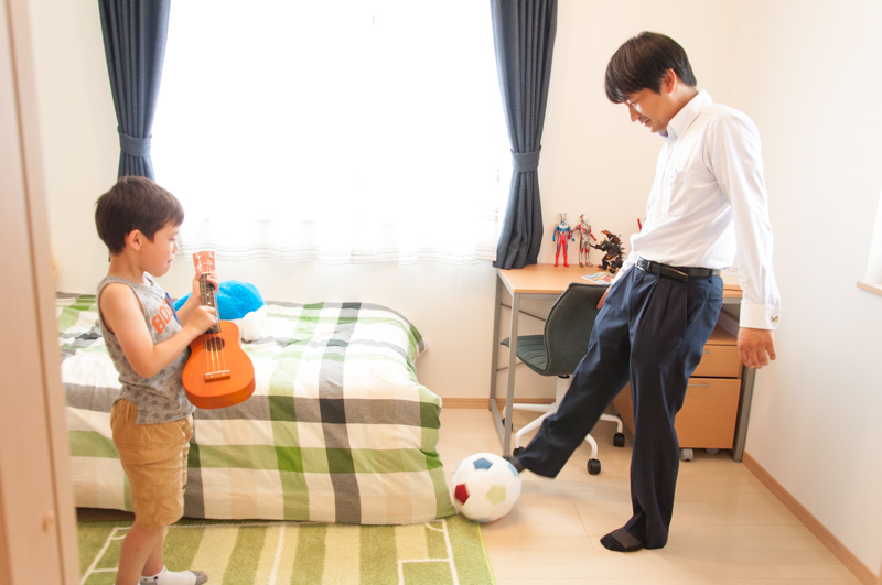 パパが仕事から帰ってきたら子ども部屋で一緒にサッカーの練習!