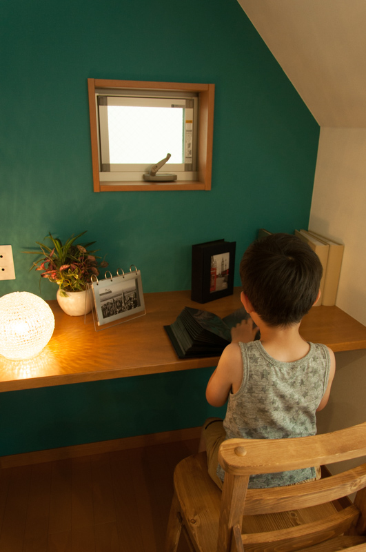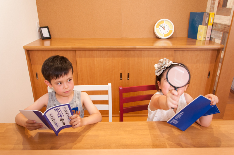ノアくんはLDKの作業スペースで読書。周りからもじゃまされず、いい雰囲気♪